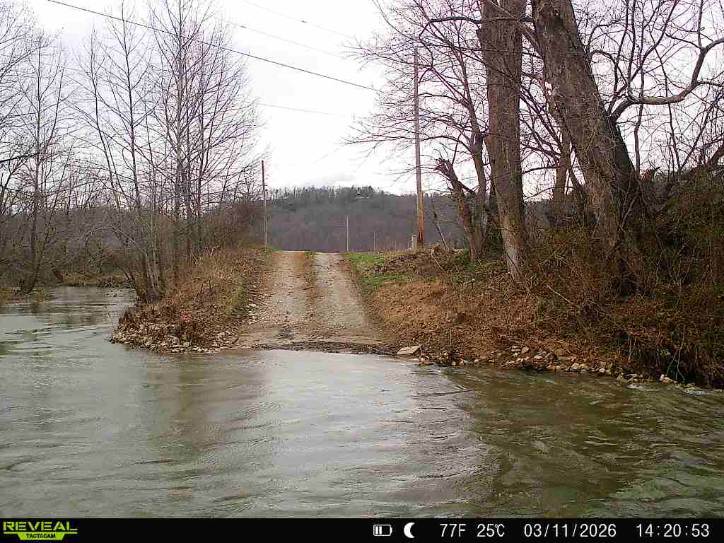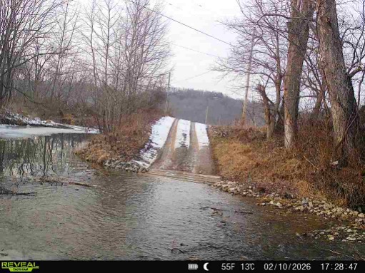 The creek picture is sent twice a day, one comes after dark. We will post the day picture as soon as we get it if there is a change in the water level.